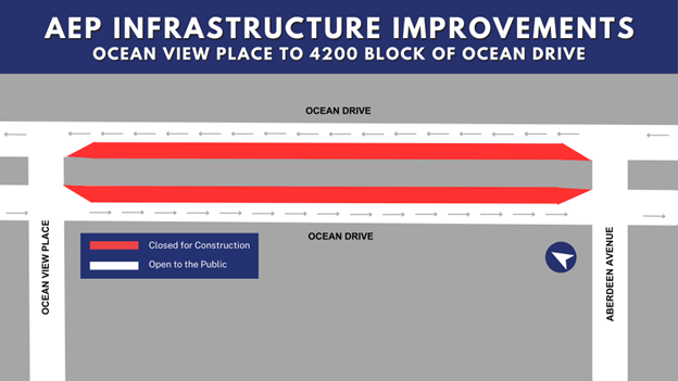 Corpus Christi, TX – An AEP contractor will begin infrastructure improvements in two locations along Ocean Drive beginning on February 18.