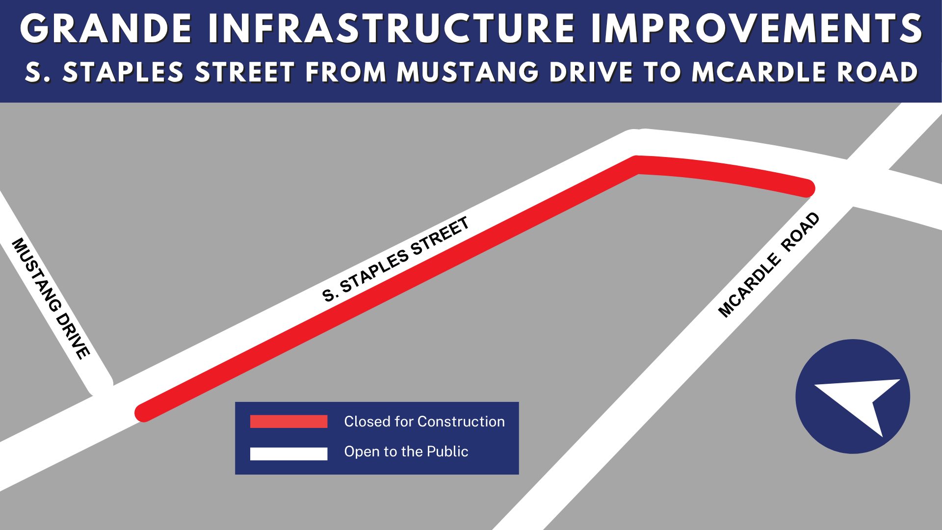 CORPUS CHRISTI, TX – Contractors for Grande Communications will begin infrastructure improvements at two locations along Staples Street beginning on Monday, November 3.