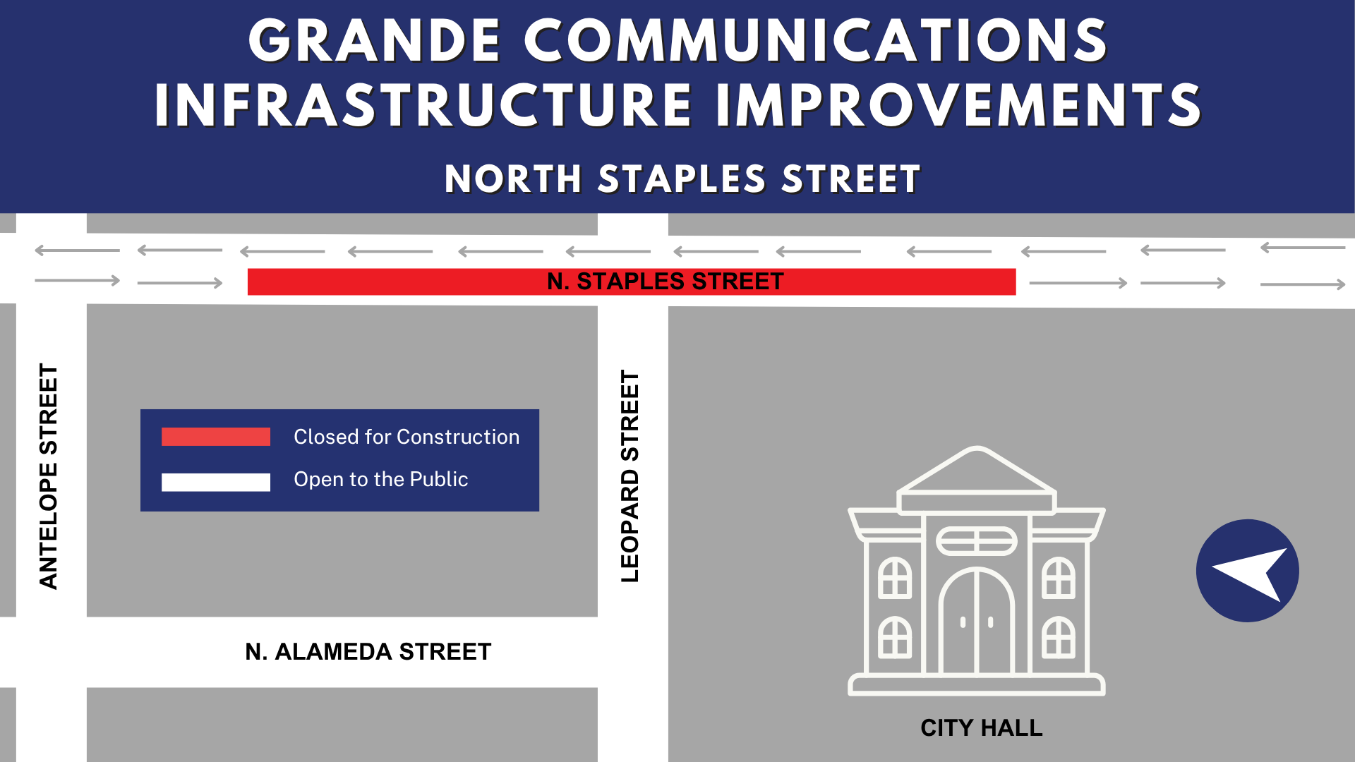 CORPUS CHRISTI, TX – Contractors for Grande Communications will begin infrastructure improvements at two locations along Staples Street beginning on Monday, November 3.