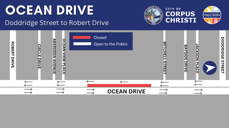 CORPUS CHRISTI— Corpus Christi Water crews will be working on the 4000 block of Ocean Drive to repair a buried manhole between Mitchell Street and Ocean View Place, reducing southbound traffic to one lane.